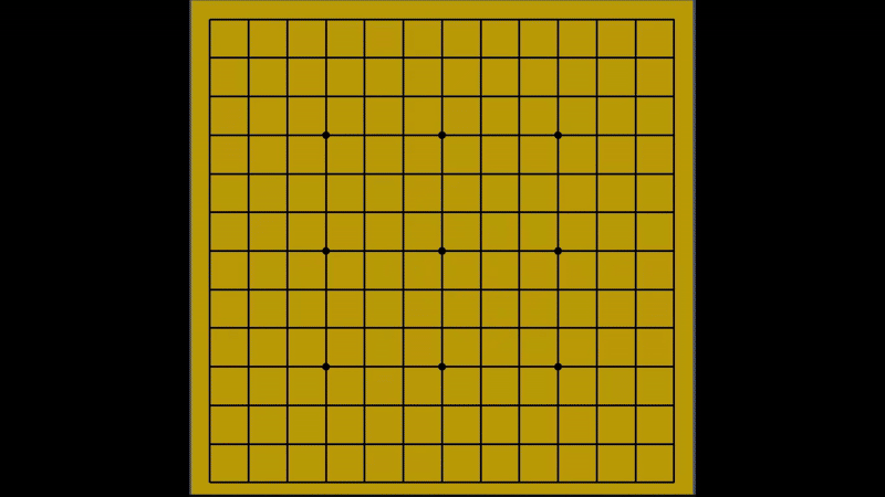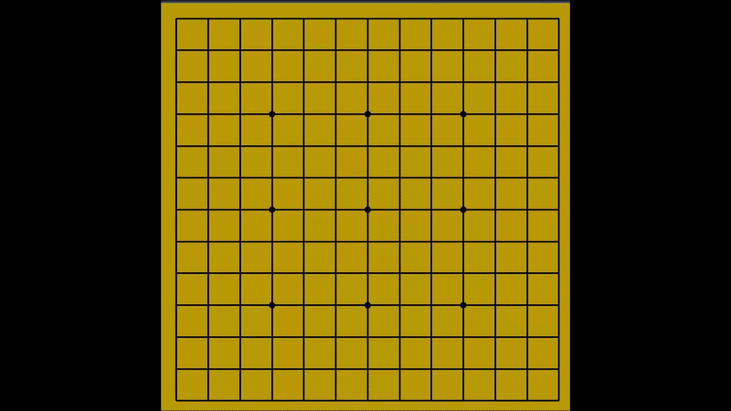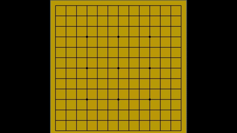 중앙점에 33이 생겼다가 없어지는것을 볼 수 있는데 그 이유는 3을 만들고 어느 방향으로 4를 만들어도 6목이 되기에 거짓 금수이다.